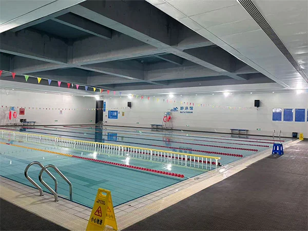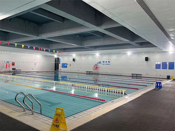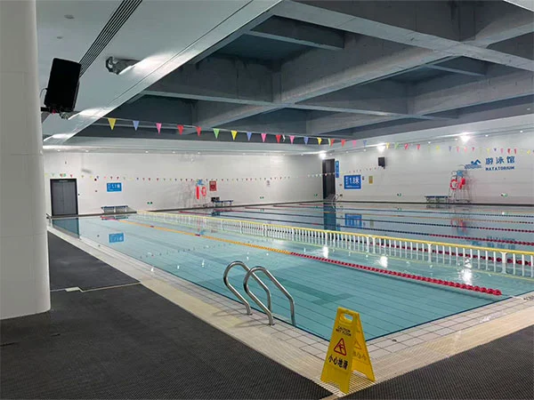जलतरण तलावाच्या बाहेरील भागामध्ये मेटल फिश-स्केल पॅनेल प्रणाली आहे, ज्यामुळे स्केलसारखा प्रकाश आणि सावलीचा प्रभाव निर्माण होतो जो दर्शनी भागाच्या वक्रता आणि सूर्यप्रकाशाच्या दिशेने बदलतो, "पाण्याचा प्रवाह" वाढवतो. इनडोअर पूल क्षेत्राची संपूर्ण छताची रचना उघडकीस आली आहे, 48 मीटर पसरलेल्या ट्रससह, स्ट्रक्चरल लॉजिकच्या स्पष्ट अभिव्यक्तीवर जोर देते आणि क्रीडा स्थळाच्या अवकाशीय प्रमाण आणि शक्तीची भावना मजबूत करते. या ठिकाणी दोन पूल आहेत: एक स्पर्धा पूल आणि प्रशिक्षण पूल. स्पर्धा पूल 50 मीटर लांब आणि 25 मीटर रुंद असून, 8 लेन आहेत; प्रशिक्षण पूल 50 मीटर लांब आणि 17 मीटर रुंद असून, 6 लेन आहेत. दोन्ही पूल 2 मीटर खोल आहेत.